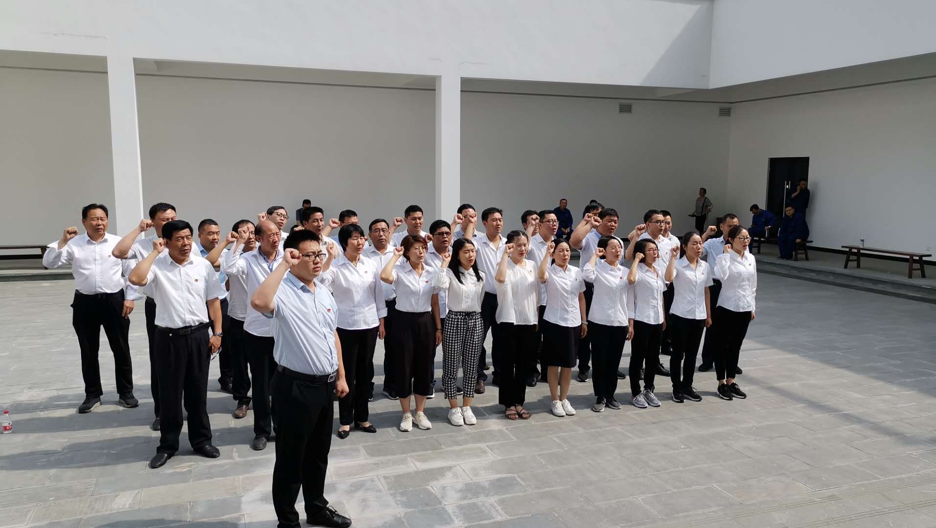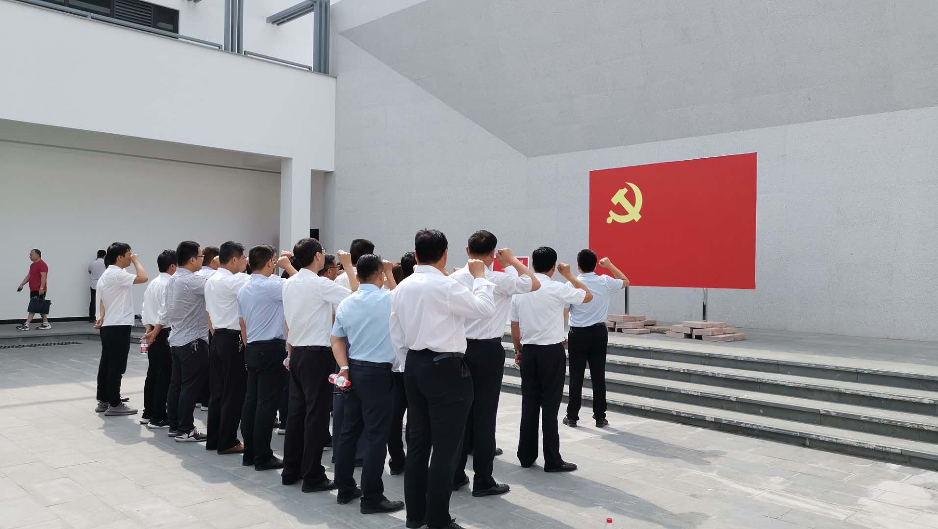 現(xiàn)場參觀學(xué)習(xí)結(jié)束后,全體黨員面對(duì)鮮紅的黨旗,集體宣誓,重溫入黨誓詞,堅(jiān)定理想信念,提升思想境界。