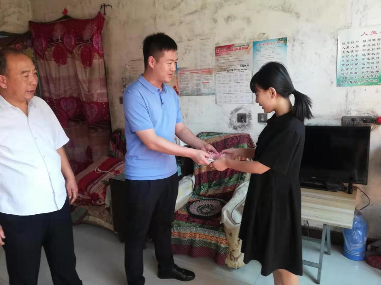 金秋將至,又是莘莘學(xué)子收獲的季節(jié),為進(jìn)一步弘揚重視教育、尊重知識、鼓勵成才的社會風(fēng)氣,幫助貧困大學(xué)生順利進(jìn)入大學(xué)校園。 8月31日,公司總經(jīng)理助理曲笑輝,工會主席路建存在申村黨支部書記郭慶法的陪同下,深入申村貧困家庭郭亭于家中,將8000元助學(xué)金送到利用高考結(jié)束的空閑時間剛剛打工回來的郭亭于手中。