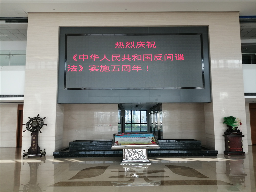 中華人民共和國反間諜法》由中華人民共和國第十二屆全國人民代表大會(huì)常務(wù)委員會(huì)第十一次會(huì)議于2014年11月1日通過并實(shí)施。在實(shí)施五周年紀(jì)念日到來之際,11月1日,公司開展了《反間諜法》實(shí)施五周年系列宣傳活動(dòng)。