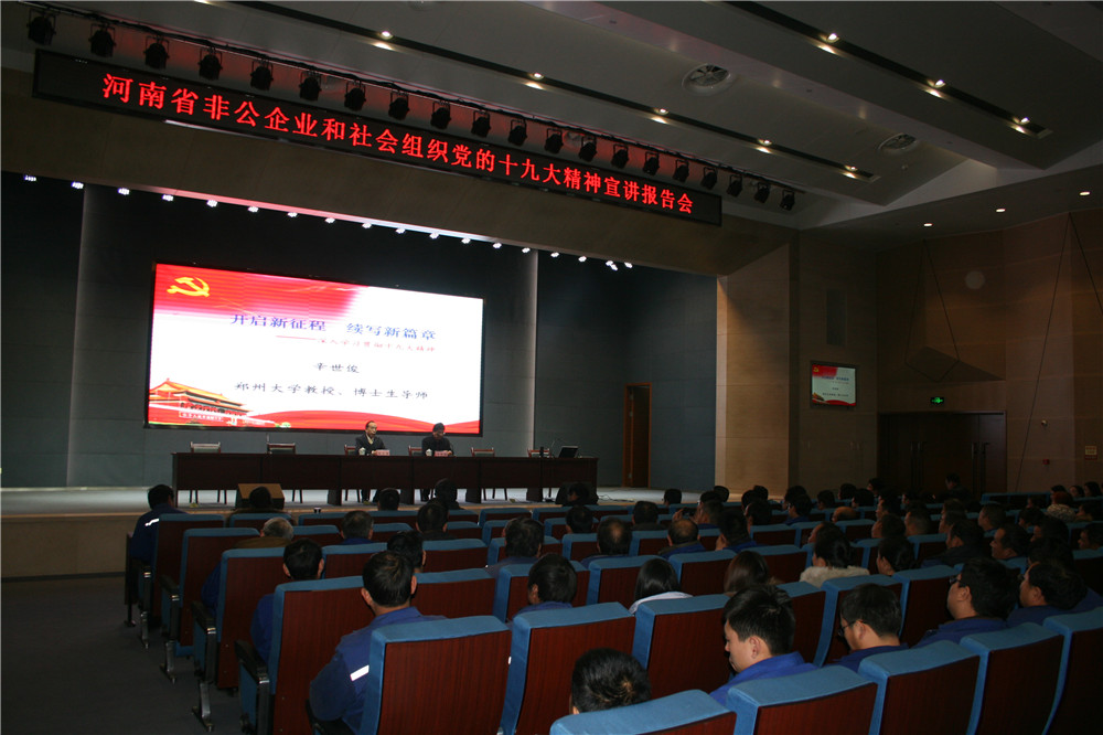 根據(jù)河南省委宣傳部、省委組織部安排部署,省非公企業(yè)和社會組織黨的十九大精神宣講報(bào)告會于12月11日下午在林州重機(jī)多功能廳舉行。省十九大精神宣講團(tuán)成員、鄭州大學(xué)教授、博士生導(dǎo)師辛世俊作宣講報(bào)告,辛教授從八個方面對十九大報(bào)告深入淺出,通俗易懂闡述了報(bào)告精神實(shí)質(zhì)和深刻內(nèi)涵。安陽市委宣傳部、市委組織部,林州市委宣傳部有關(guān)領(lǐng)導(dǎo)參加并聆聽了宣講報(bào)告。公司黨委書記郭現(xiàn)生及中高層領(lǐng)導(dǎo),全體黨員及入黨積極分子,機(jī)關(guān)各部室管理人員及車間管理人員共300余人聽取宣講報(bào)告。會后,公司黨委書記、董事長郭現(xiàn)生接受了安陽電視臺的采訪。
